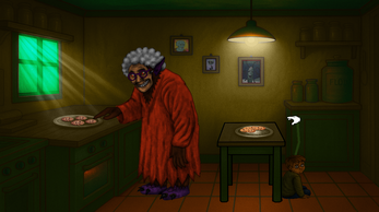 Don't get caught, the granny won't like you taking her cookies, get caught too many times and you lose. You hide your hand behind the counter.
